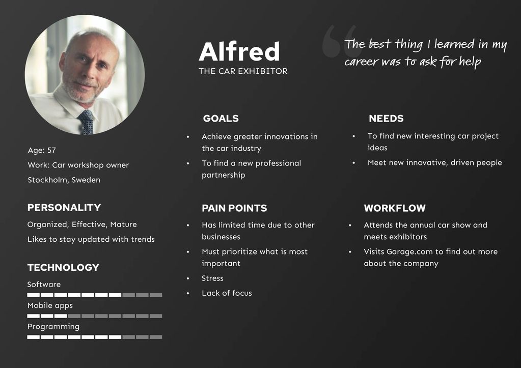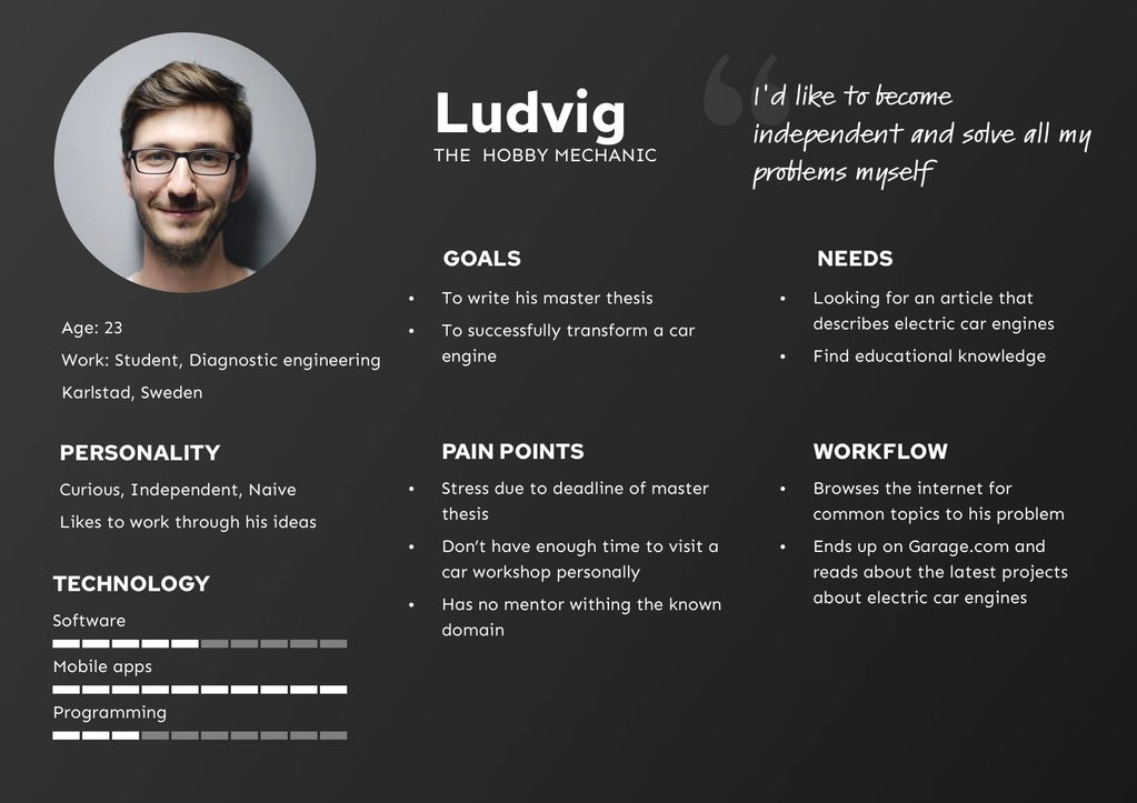 PI created Garage when I aimed to learn a new design tool - Adobe XD. And to show off some of my UX skills. In this case personas and flow-charts.