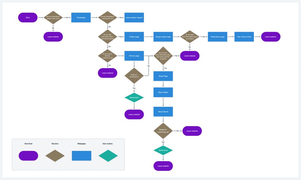 After defining my two main characters I tried to map their workflow through the website and process when solving their tasks. I'm trying to find all possible endpoints when the user leaves the page and accommodate their needs as good as it is possible.