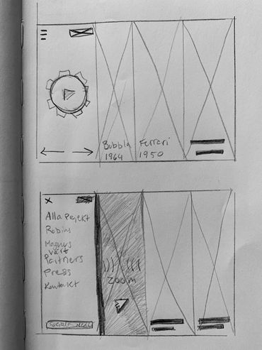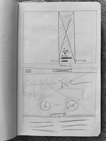 I started to sketch a brief paper wireframe off the website. With the goal to get a clearer image of my vision. I want to highlight projects and design a slightly different layout. The layout should have a horizontal interface that makes the user curious to browse the content that is shown after loading. During the wireframe stage I also start to shape how I want the animations to behave.