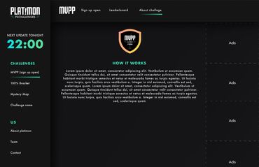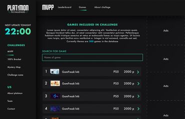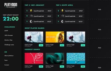 I was requested to use lime green and turquoise as complementary colors. I did not mind this it fitted my vision for the platform very well. My goal was to make a UI that would attract the users, in this case, gamers. A dark UI is very common within gameing and in the games themself. So it felt like a natural choice and it fits well with the complementary colors lime green and turquoise.