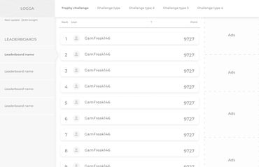 The logo should have a "gamer" feeling and I used the cup or statuette instead of the "i" to establish a connection to the meaning of the game/challenge. It symbolizes a feeling that you want to triumph and win the leaderboards. The cup came to be the symbol that reoccurs in the badges to reconnect to the logo and brand.